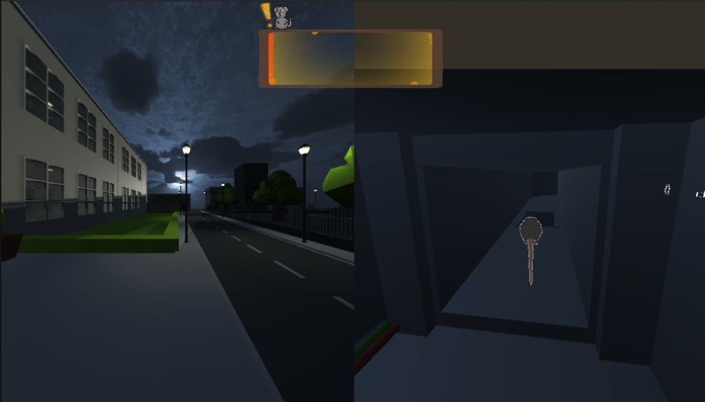 A two-player split-screen co-op game in which a human / rat duo must work together to heist a cheese museum and take home the big cheese, whilst avoiding guards and cameras. Developed in Unity as part of a group project