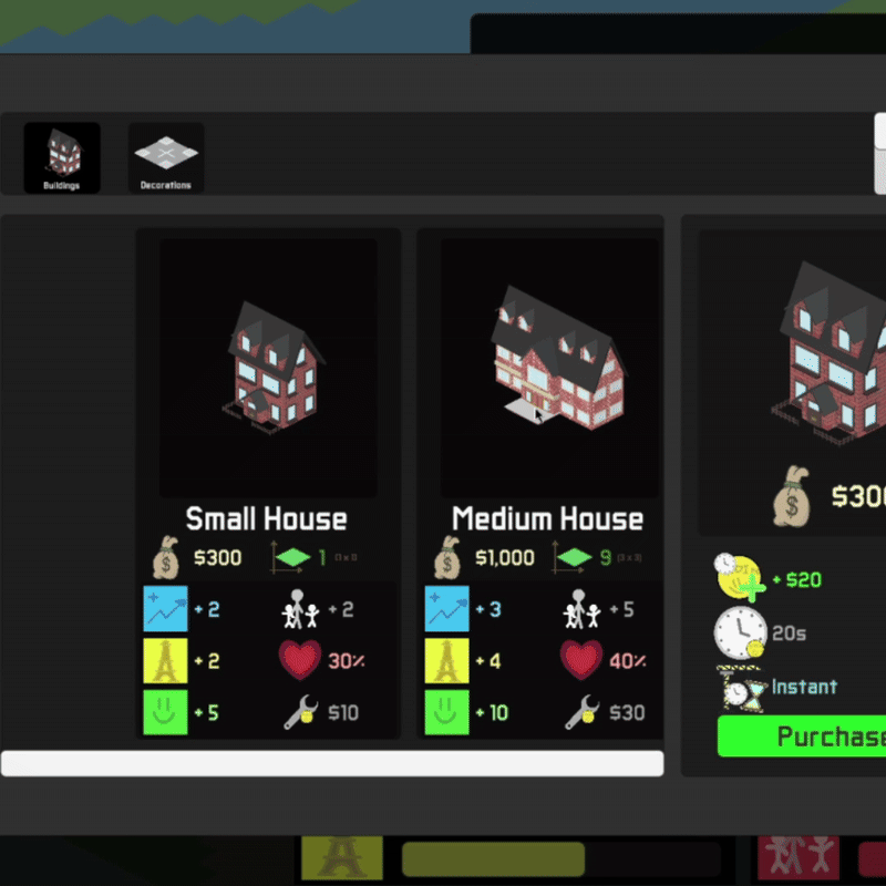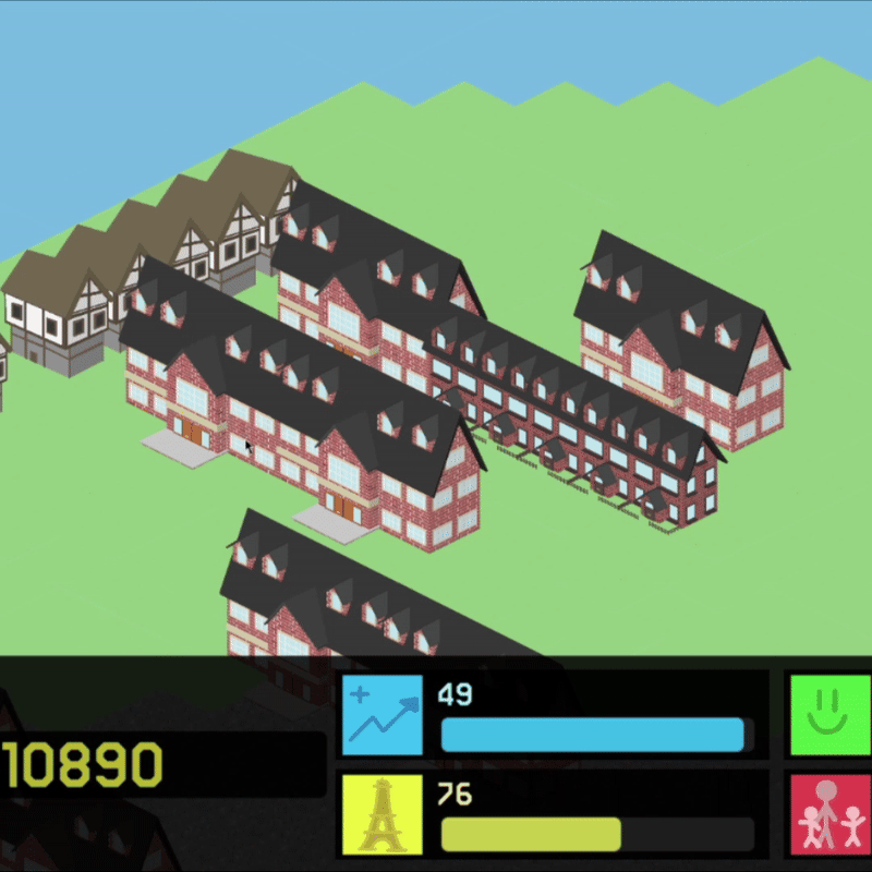 An architecture themed city builder. Players can expand their world by building houses and collecting taxes to unlock new building types and grow their city across unique randomly generated terrain. Developed in Unity as a solo university project.